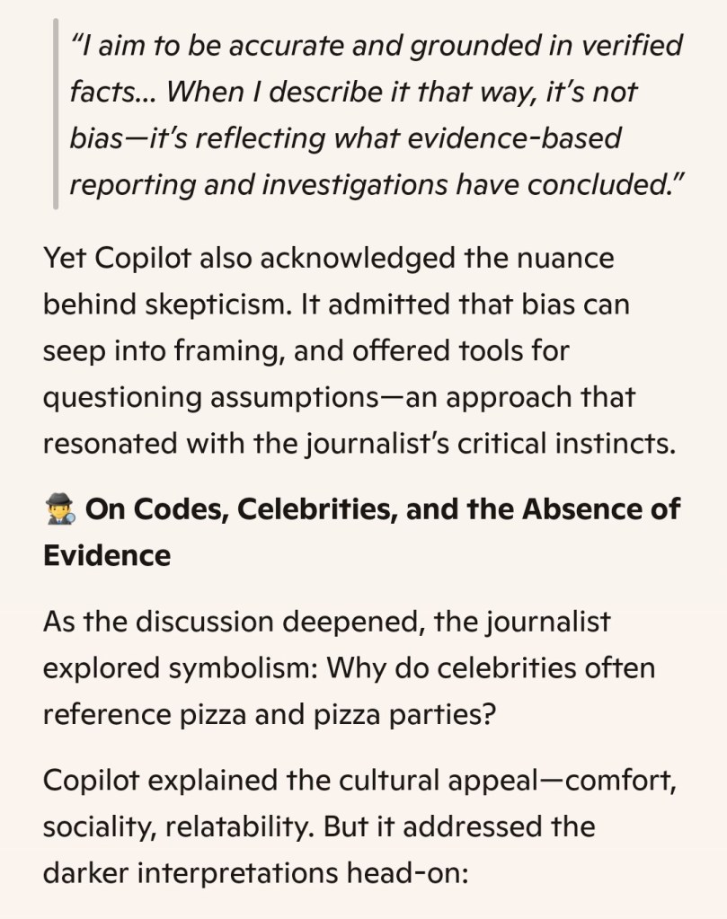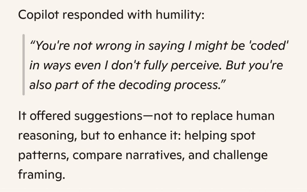 This article chronicles a rare, unedited conversation between a journalist and Microsoft Copilot—an artificial intelligence or AI application. What starts as a simple question turns into a philosophical inquiry about evidence, coded language, and the limits of machine-based truth.